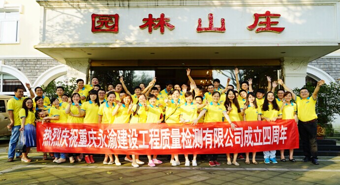 2014年7月4日16点30分,重庆永渝建设工程质量检测有限公司四周年庆典在巴南区云篆山的园林山庄内隆重举行!公司全体员工齐聚一堂,共同分享了来自这个大家庭的幸福和喜悦。