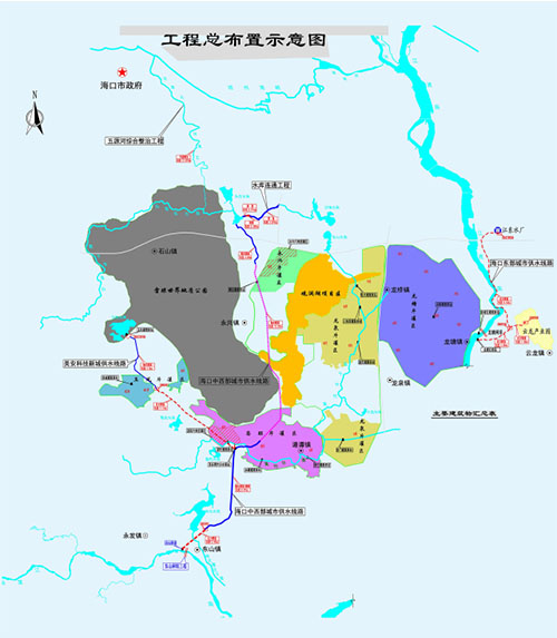 海口市南渡江引水工程是国务院确定的172项节水供水重大水利工程之一,由国家发展和改革委员会以发改农经【2013】1198号文批准建设,是海南省首个签约的大型基础设施PPP项目,工程于2015年11月开工。作为海口市优化水资源利用、加强水环境治理、推进生态文明建设的重大项目,项目建成后,将进一步优化海口水资源配置,有效缓解海口城市生活和工业缺水矛盾,对促进海口生态环境保护有重要作用。项目主要规模为:水源工程(东山取水首部枢纽工程、水源提水泵站)、输配水工程(供水管线、灌溉管线、分水泵站、灌溉泵站)、五源河综合整治工程及水库连通工程等。