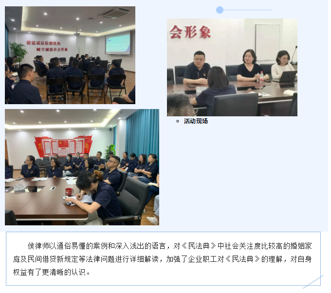 为深入贯彻习近平法治思想,进一步加强民法典普法工作,提升全体员工尊法、学法、守法、用法意识,2021年6月8日下午,钜沃律师事务所到我司组织开展《民法典》主题宣讲活动。