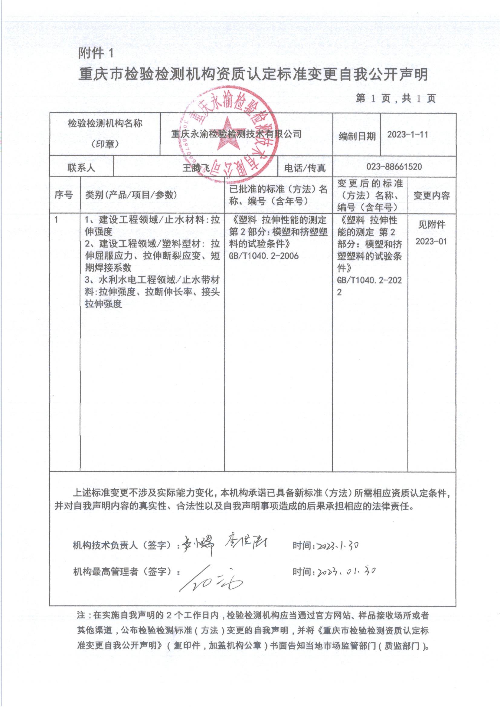 重庆市检验检测机构资质认定标准变更自我公开声明