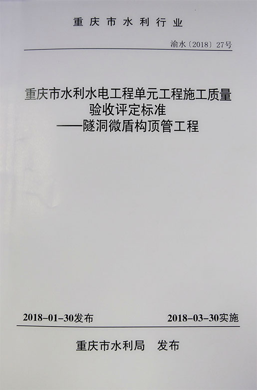 我司参编的《重庆市水利水电工程单元工程施工质量验收评定标准——隧洞微盾构顶管工程》已正式实施