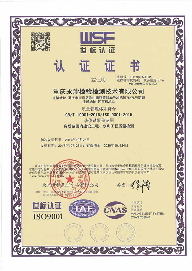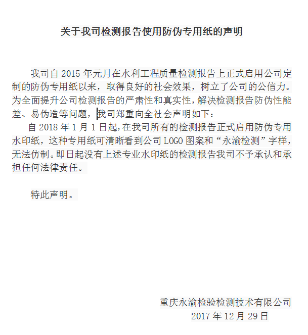 依据《水利工程质量检测管理规定》(水利部令36号)和重庆市水利局《关于开展2017年全市乙级水利工程质量检测单位资质审批工作的公告》