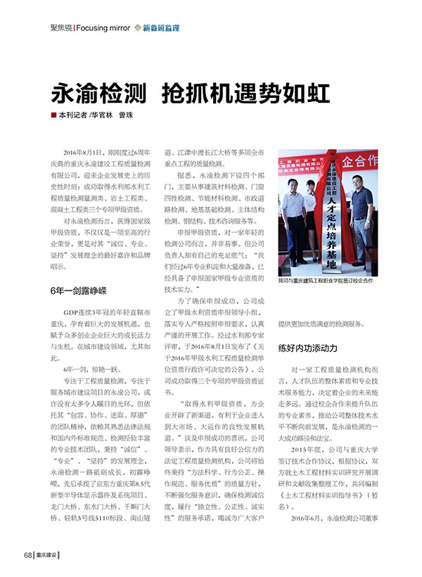永渝检测 抢抓机遇势如虹 ——《重庆建设》(2016第43期)